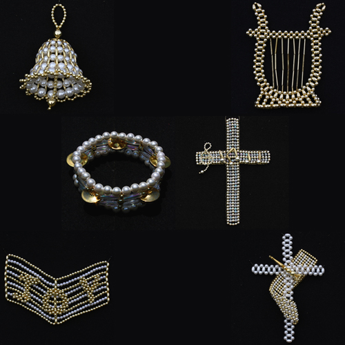 Beaded Bell, Golden Lyre, Miriam's Tambourine, Musical Cross, Song of Joy, & Trumpet Cross.